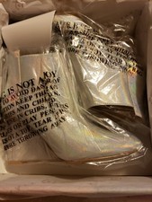 Katy Perry Women's Mona Ankle Boot, Platinum Iridescent Clear Heel Size 8M/38